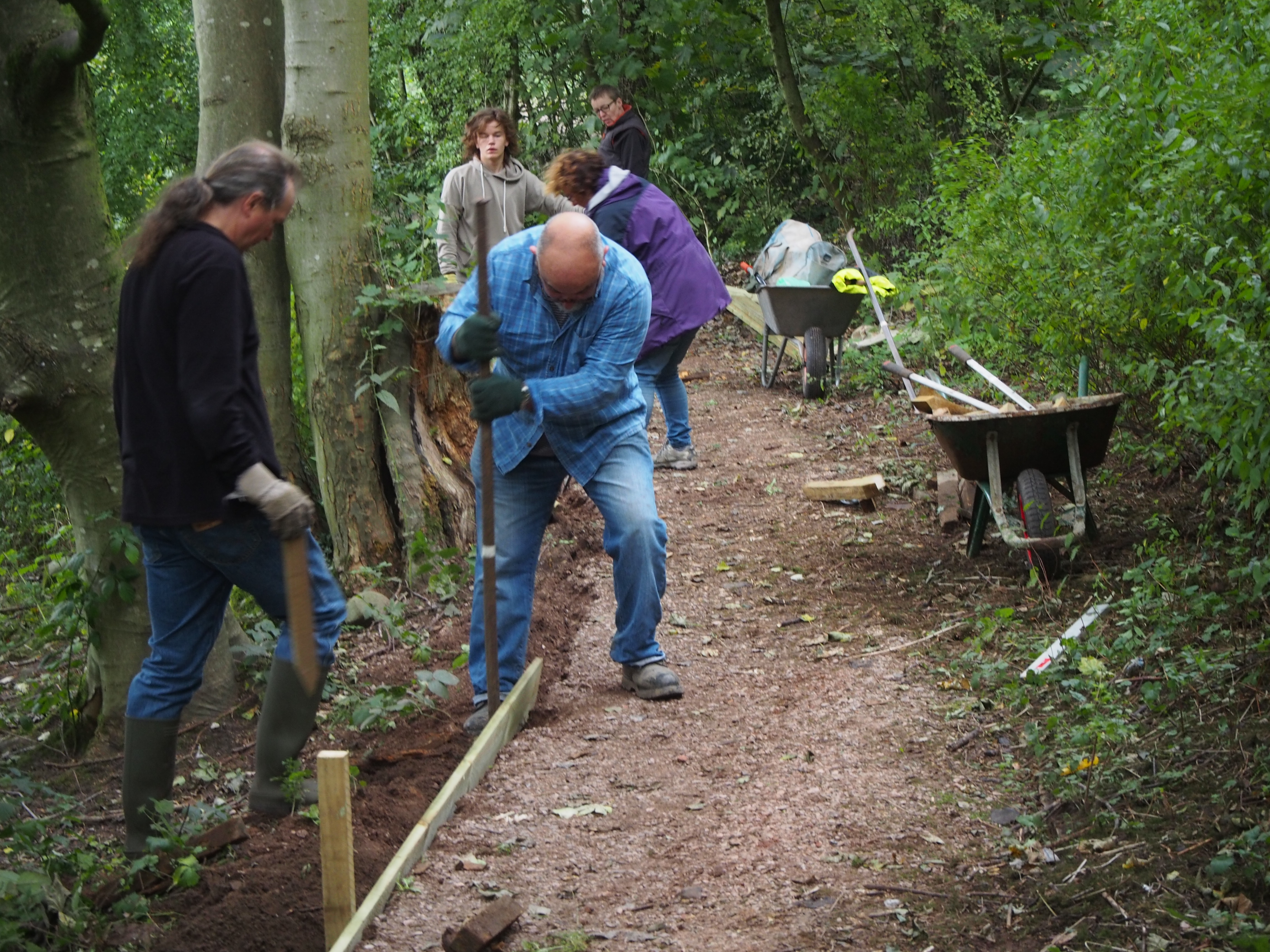 Volunteers do many different things: from litter picking and bramble bashing to tree pruning and hedge-laying; from planting bulbs to preparing a wild flower space; from growing food in a forest garden to weeding flower beds. There are jobs to suit everybody: making tea for the volunteers getting muddy, chatting to people visiting the green space to find out what they enjoy; putting up posters; helping raise funds – there are lots of ways to help.